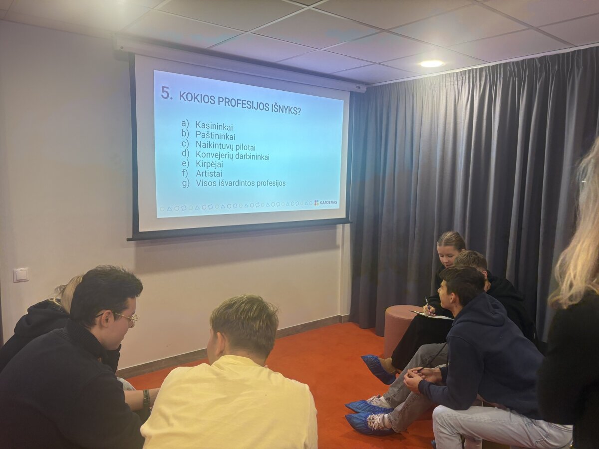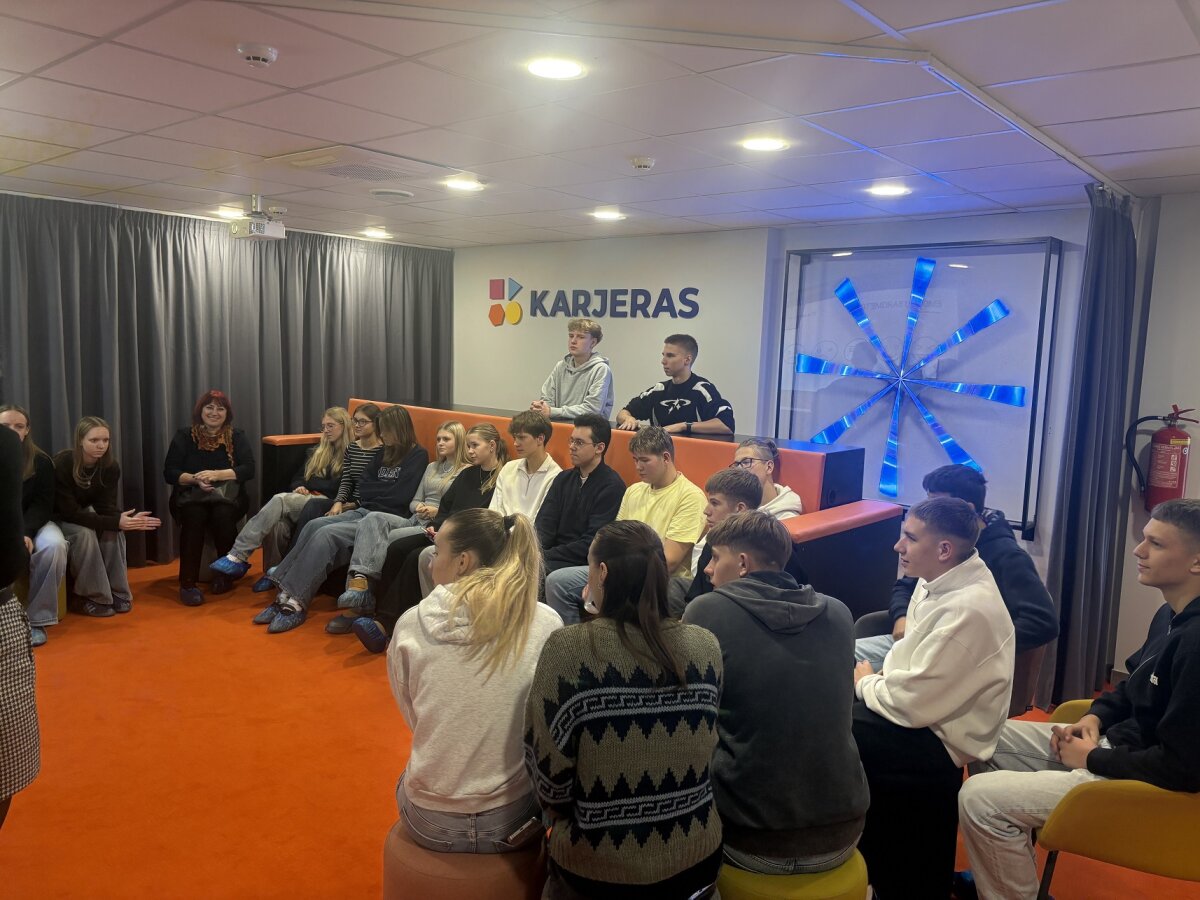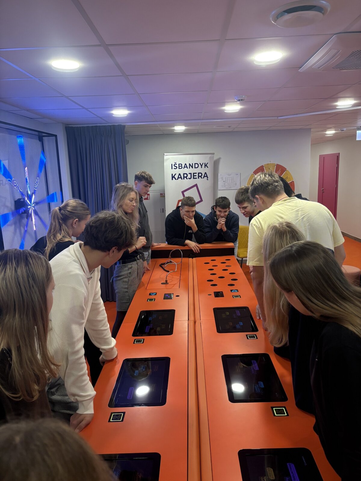 Spalio 14 d. Vievio gimnazijos IIA klasės mokiniai kartu su karjeros specialiste Ieva Jarašiene ir mokytoja Asta Barauskiene lankėsi Vilniuje, kur duris šiais metais atvėrė pirmoji Lietuvoje ir Baltijos šalyse skaitmenizuota erdvė planuojantiems karjerą.