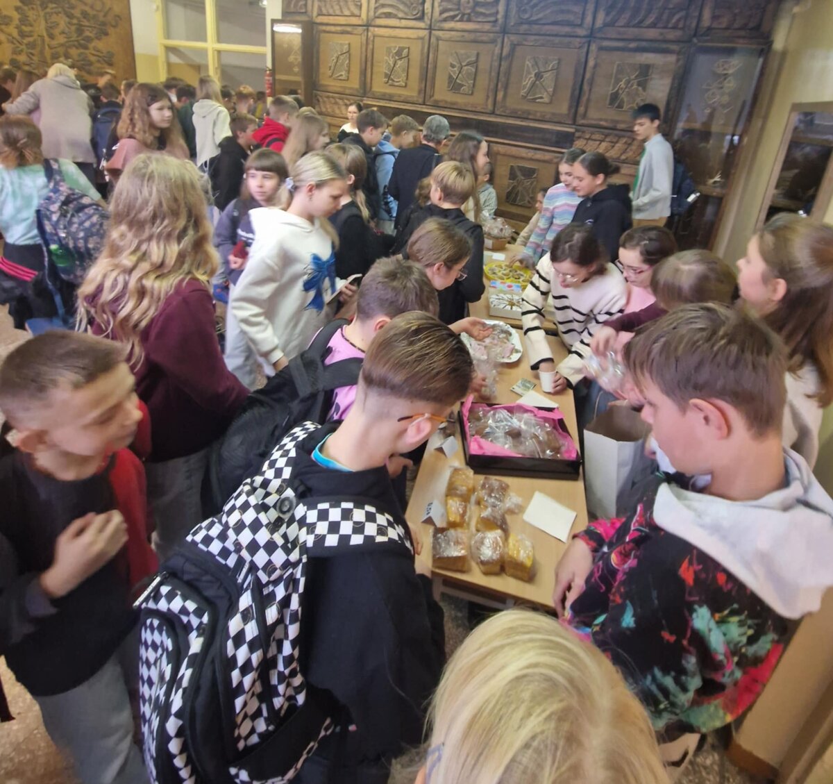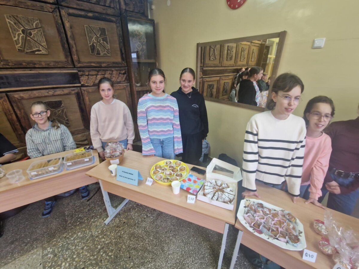 Tad lapkričio 10 d. mokiniai ir mokytojai susibūrė geriems darbams – namuose keptais pyragais vaišino draugus, gimnazijos darbuotojus. Per ilgąją pertrauką antro aukšto fojė tvyrojo smagi nuotaika: mokiniai skanaudami kepinius džiaugėsi, kad gera dalintis.