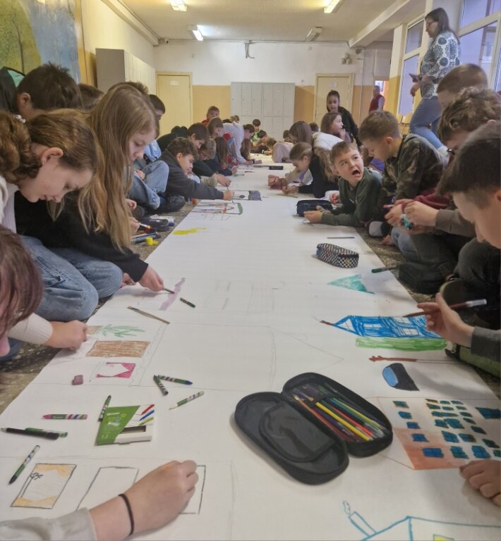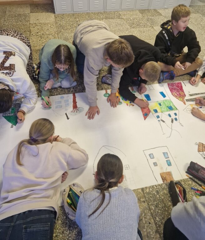 Vievio gimnazijos 5-6 klasių mokiniai kūrė bendrą Vievio gimnazijos bendruomenės gatvę. Kurdami 10 metrų piešinį mokiniai diskutavo apie kaimynystės svarbą, vienų su kitais santykius ir priklausymo bendruomenei svarbą.