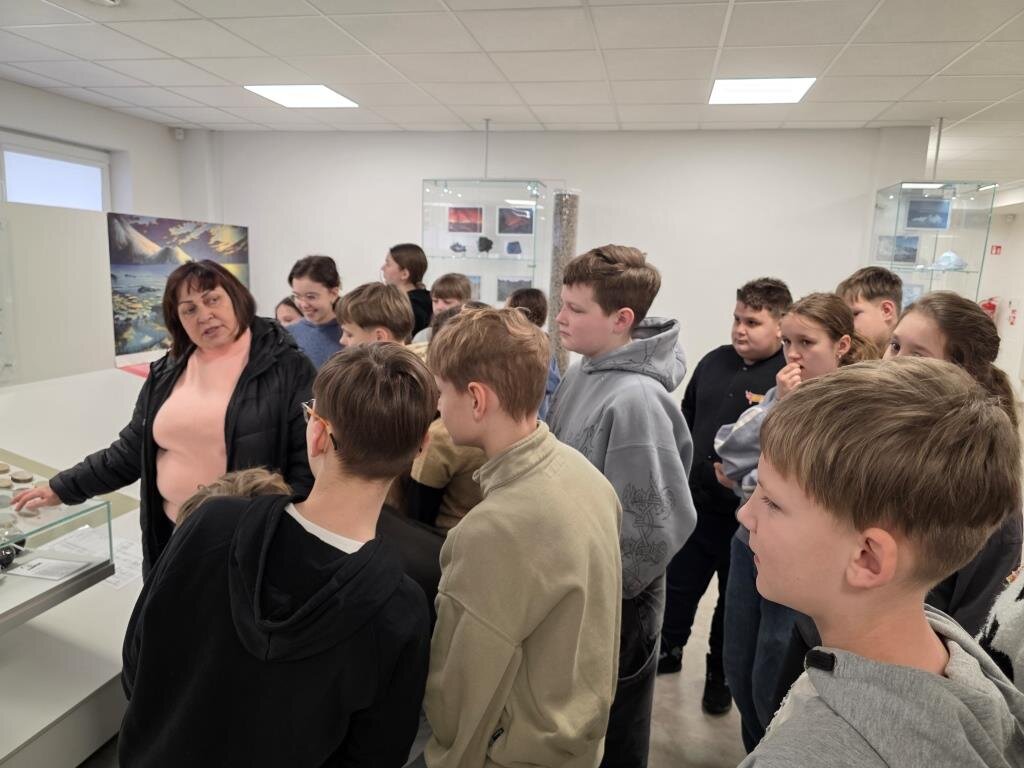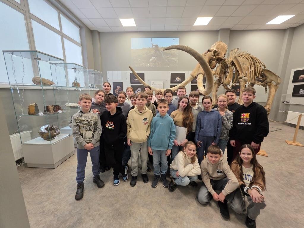 2026 m. vasario 23 d. 5B klasės mokiniai kartu su gamtos mokslų mokytoja L. Mickūniene ir klasės auklėtoja I. Rastorgujeva lankėsi Lietuvos geologijos tarnybos Žemės gelmių informacijos centre, įsikūrusiame Vievyje.