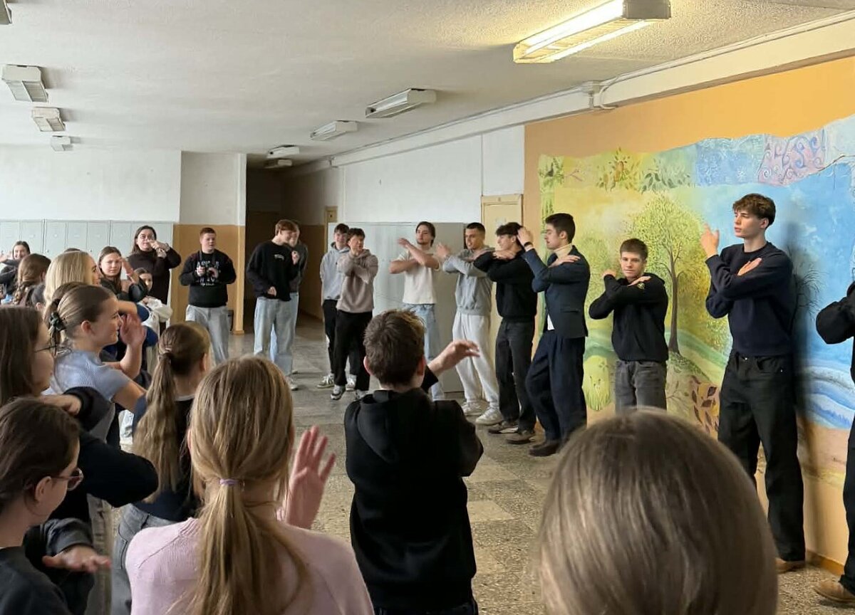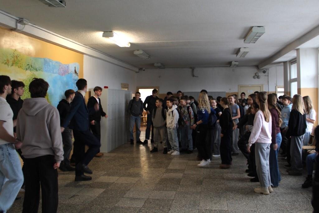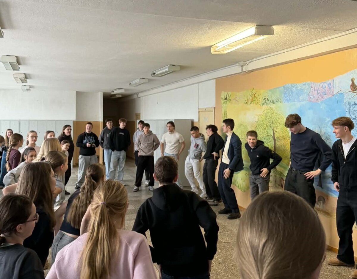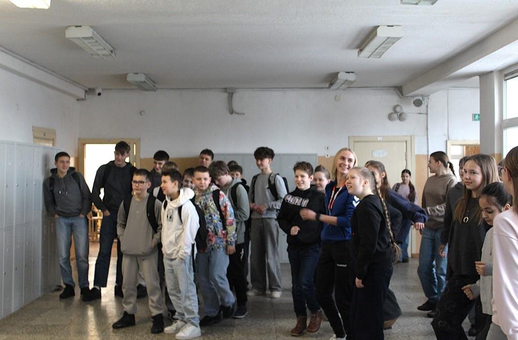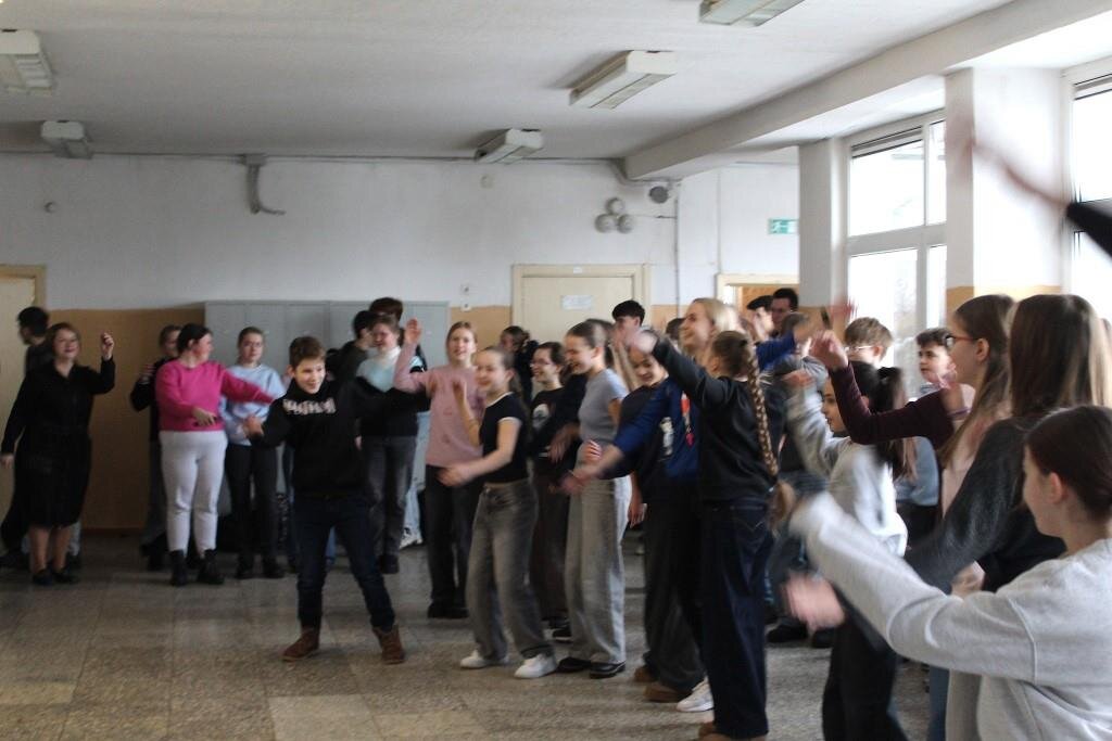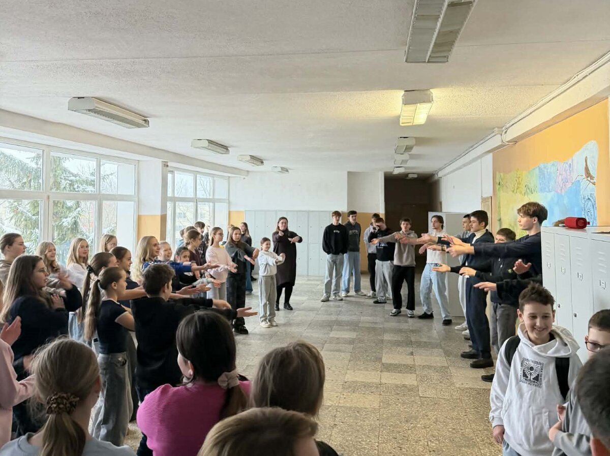 Vasario 11 dieną, po antros pamokos, mokinių taryba kartu su fizinio ugdymo mokytoja Migle Debesyte-Narbutiene gimnazijos mokinius pakvietė pasimankštinti.