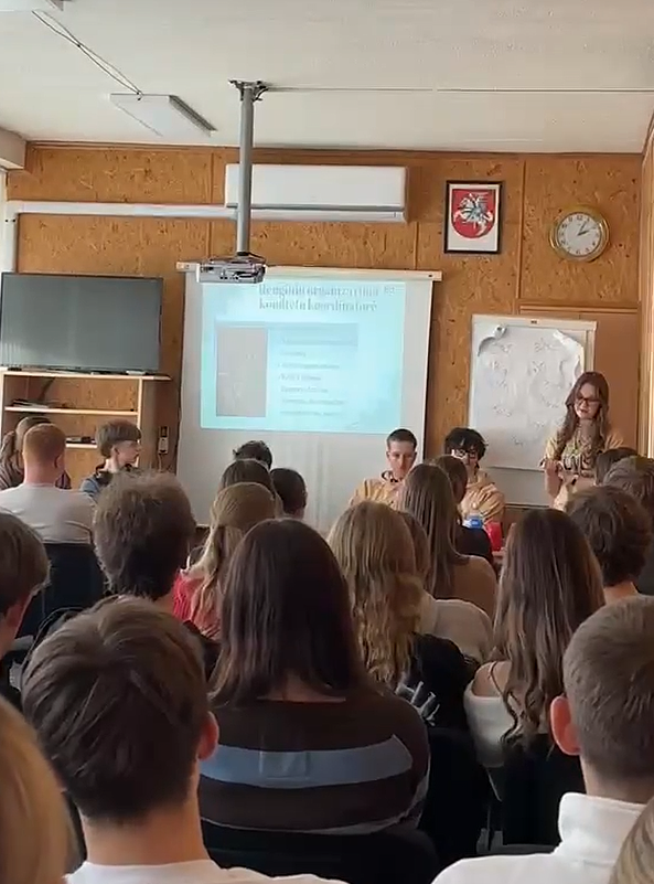 Kovo 19 dieną, saulėtą ketvirtadienio popietę, mūsų gimnazijos mokiniai dalyvavo susitikime su Lietuvos moksleivių sąjungos atstovais. Į renginį buvo kviečiami visi 8-9 ir I-III gimnazinių klasių mokiniai.